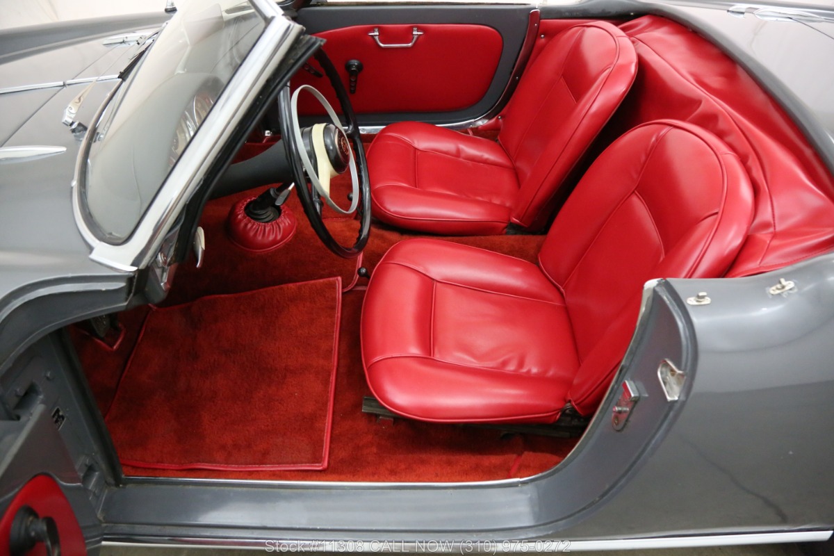 This highly collectible 1959 Alfa Romeo Giulietta Veloce Spider is available in a stunning color combination of grigio graphite with a red interior.