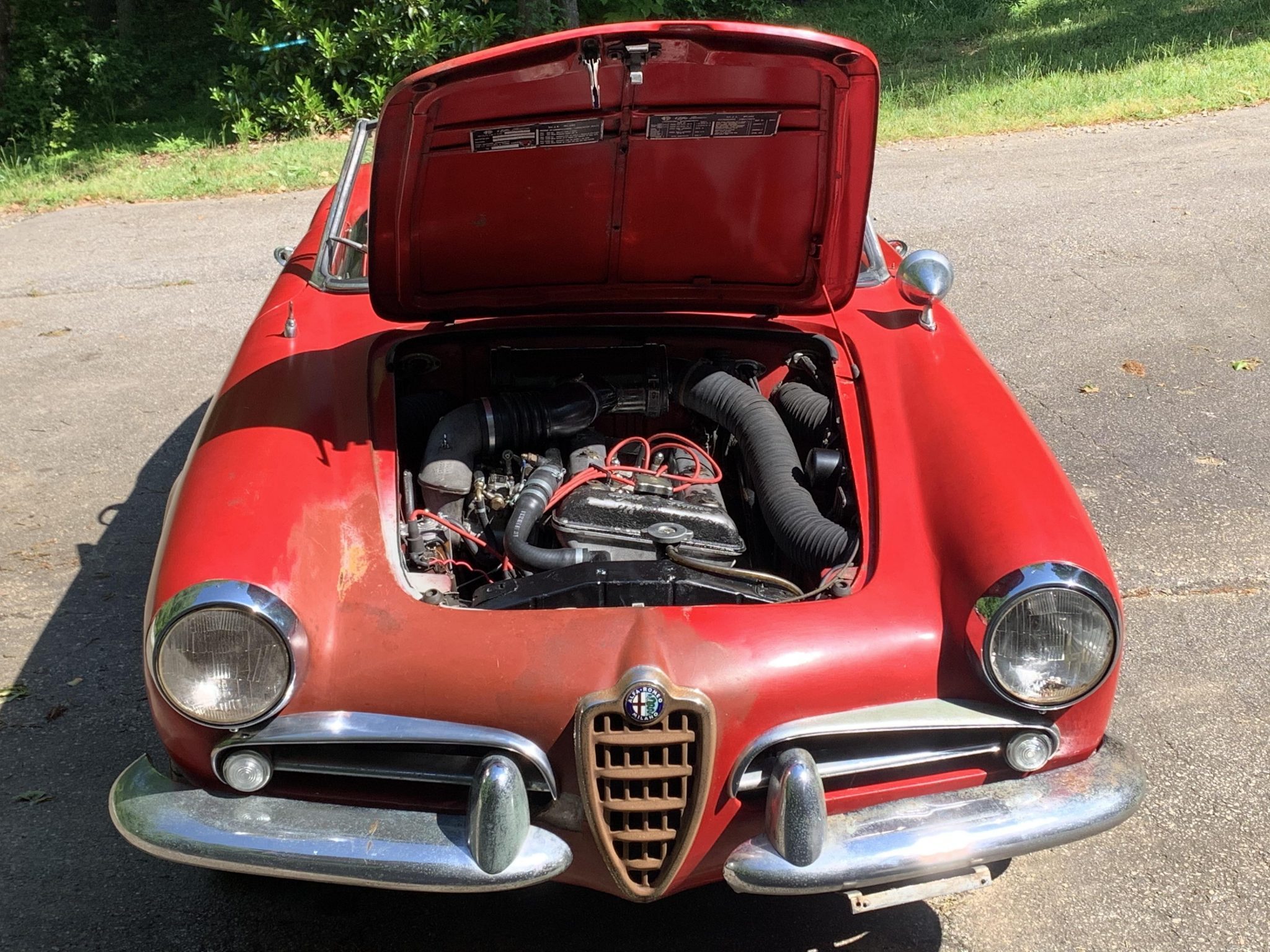 This 1958 Alfa Romeo Giulietta Spider Veloce was purchased new on September 25, 1959 in Texas and was acquired by the seller as a non-running project from Florida in January 2018, reportedly after 44 years in storage with its second owner. The car was subsequently reunited with its numbers-matching 1.3-liter inline-four as well as receiving additional mechanical freshening and new black vinyl seat covers under current ownership. Equipment includes a four-speed manual transmission, a convertible top frame, lap belts, a Talbot Berlin fender mirror, a period Motorola radio, a fire extinguisher, and a heater. This Giulietta Spider Veloce is offered with a tool kit, an early hand-written maintenance journal, records from 1959 to 2021, and a clean South Carolina title in the seller’s name.