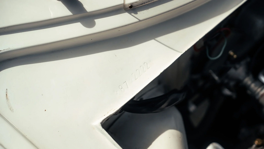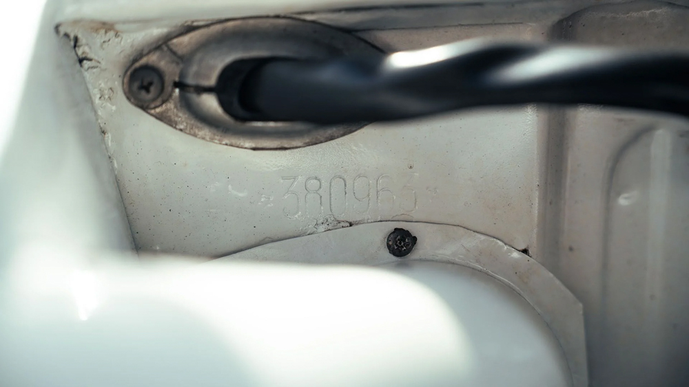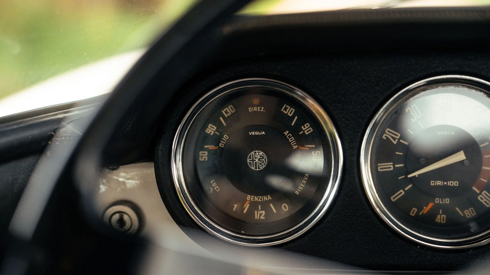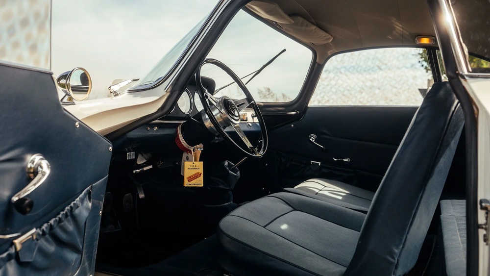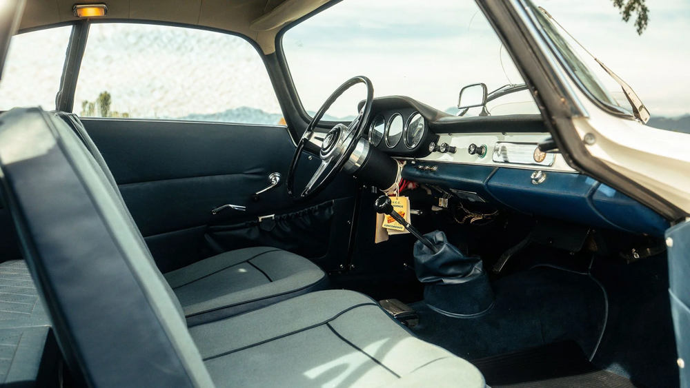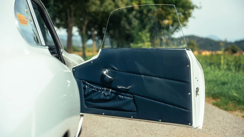 Finished in Bianco Alfa over a blue and grey cloth interior
