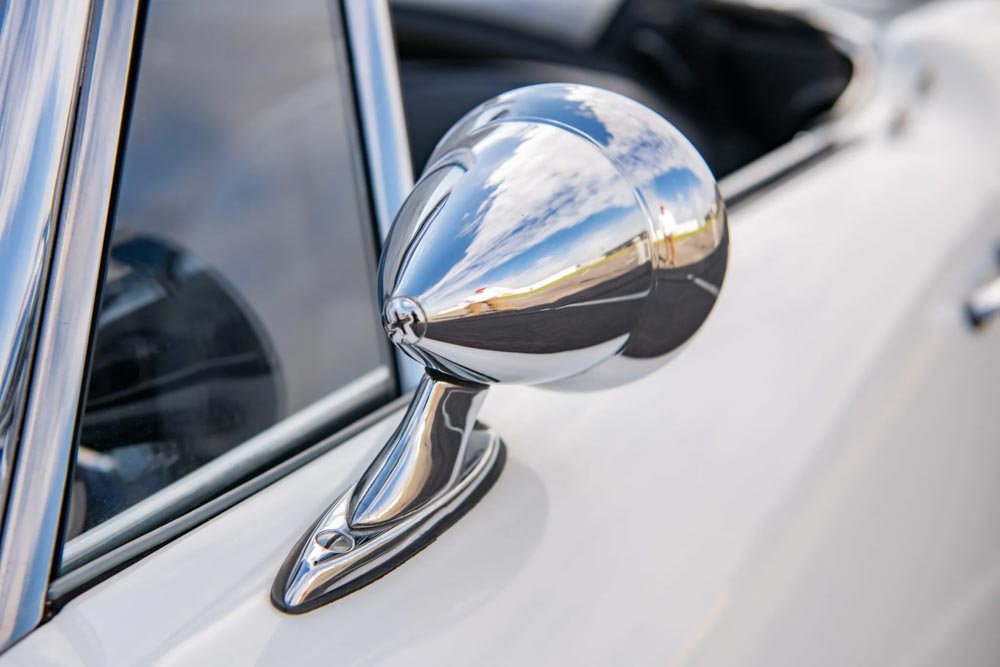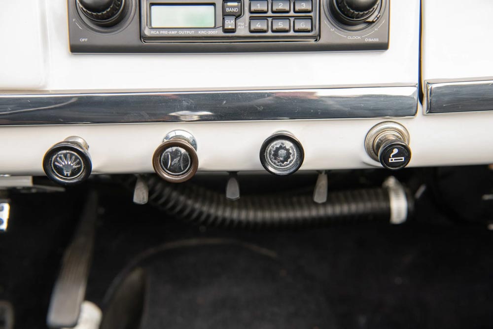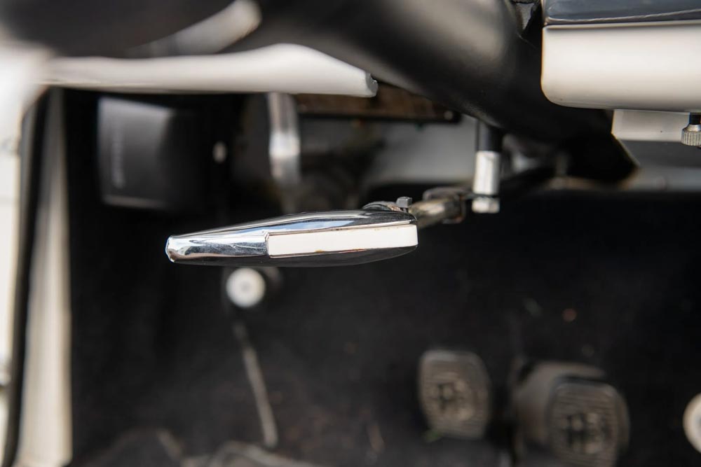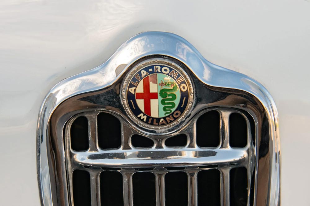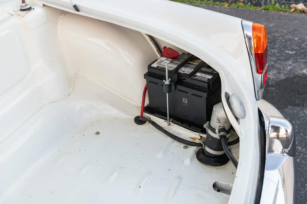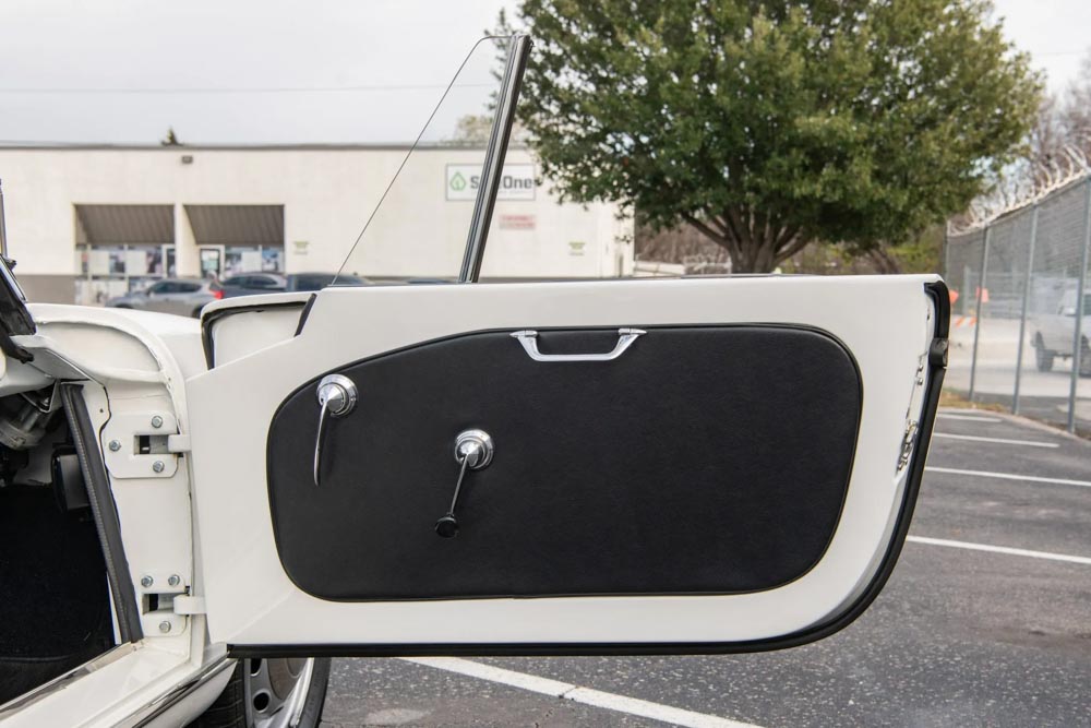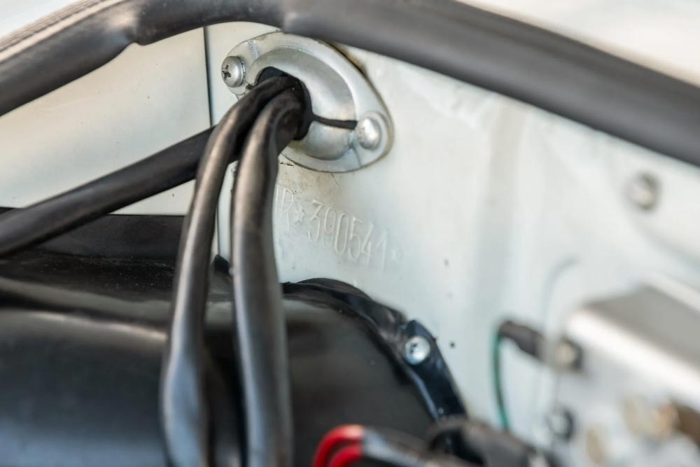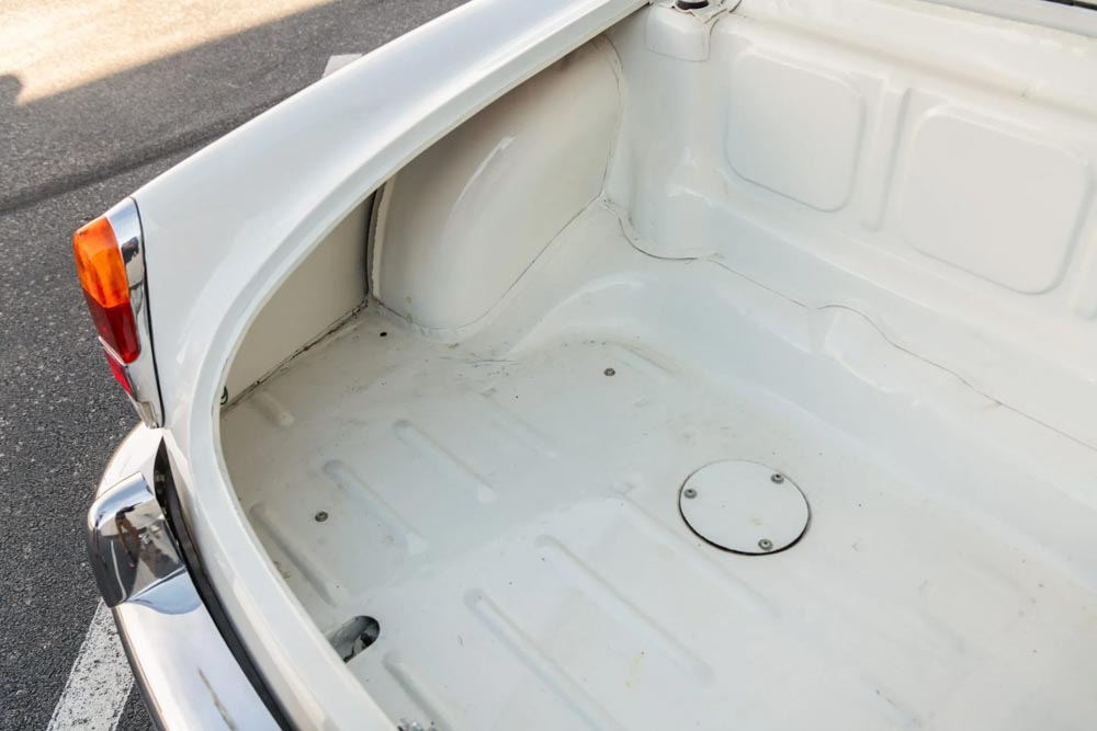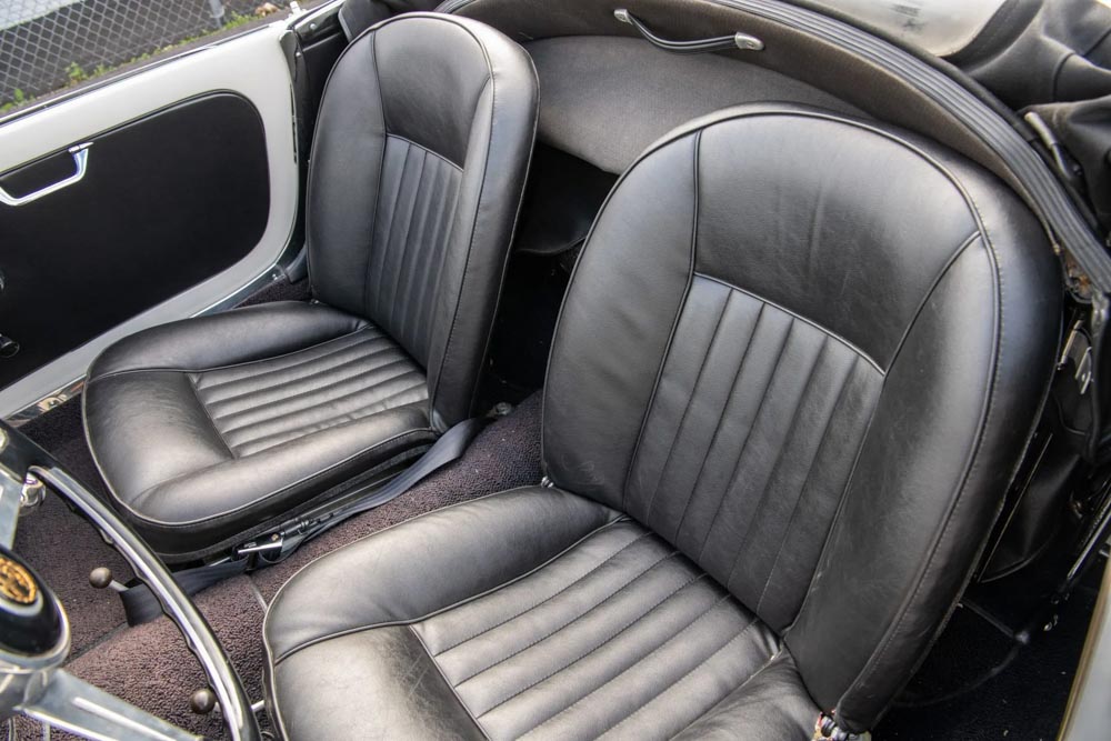 The 101-Series chassis was announced in 1959 as an evolution of the 750 platform and featured a lengthened wheelbase, larger rear lights, fixed side wing windows, and a stepped hood. The Pinin Farina–styled body of this example was repainted white and fitted with a replacement black soft top as part of the aforementioned refurbishment completed under current ownership. A bullet-style left-side mirror, chrome bumpers, and 1600 Veloce badging are further details. The rear window is clouded, the right-side reverse light is inoperable, and close-up photos of blemishes in the paint are provided in the gallery below.