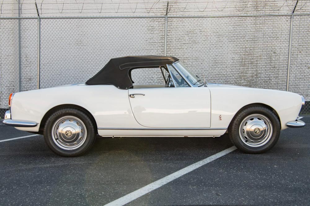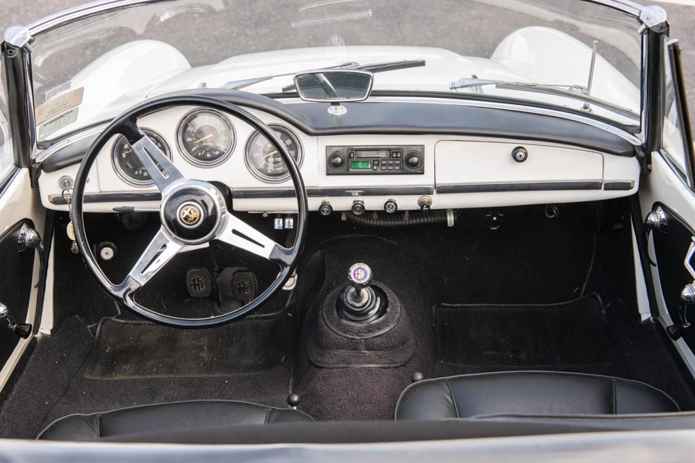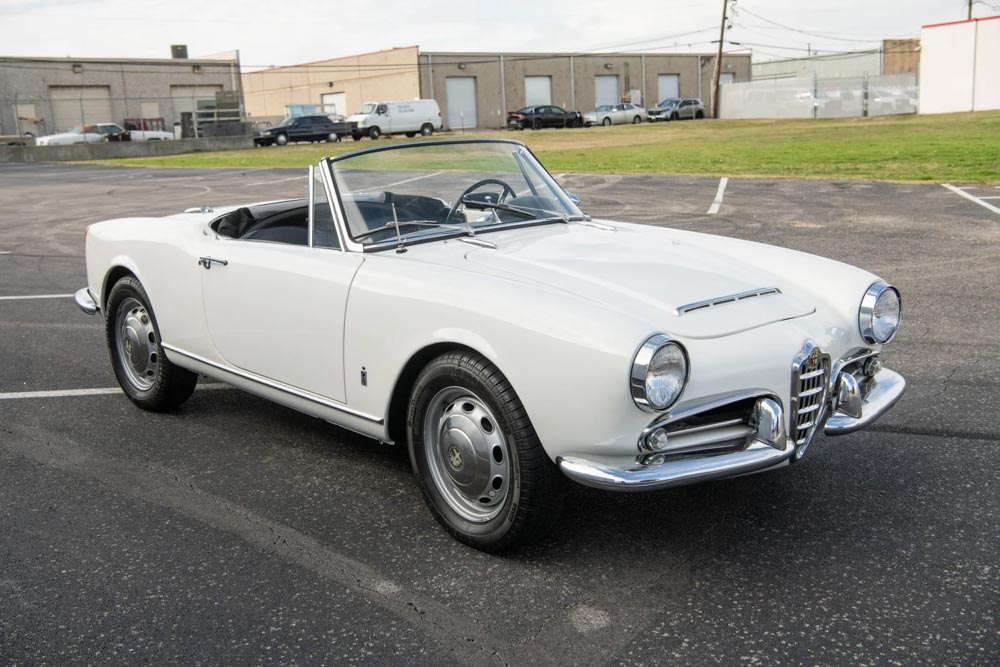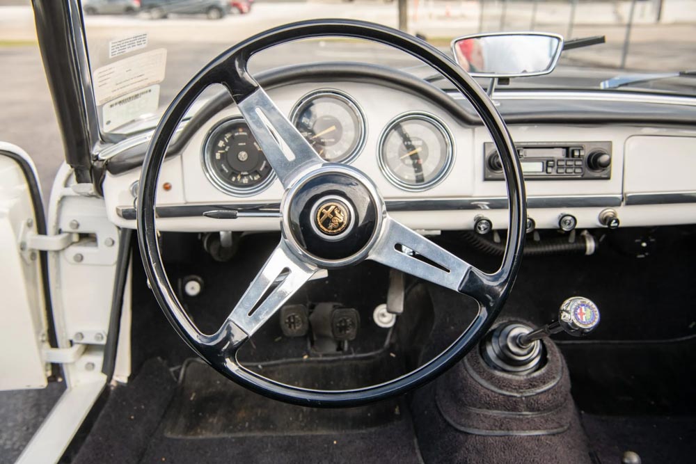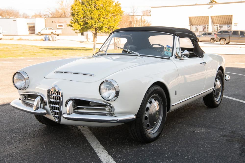 This 1965 Alfa Romeo Giulia Spider Veloce was acquired by the seller and their spouse in 1998 and refurbished over the following few years. The body was refinished in white, a replacement black convertible top was added, the interior was reupholstered in black vinyl, and the 1.6L twin-cam inline-four was rebuilt. Subsequent work in 2013 involved rebuilding the dual Weber carburetors as well as the brake master cylinder, front calipers, and rear wheel cylinders. Shifting is via a five-speed manual transmission, and further equipment includes Fergat 15″ wheels, a Kenwood cassette radio, and Veglia instrumentation. This 101-Series Spider Veloce is now offered with partial service records, refurbishment photos, a 1998 appraisal document, and a clean Texas title in the name of the seller’s spouse.
