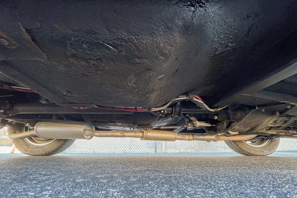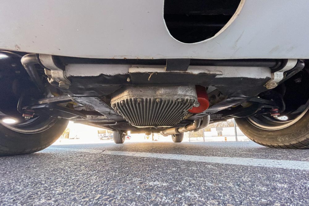 Power is delivered to the rear wheels via a five-speed manual transmission. Additional underside photos are provided in the image gallery.
