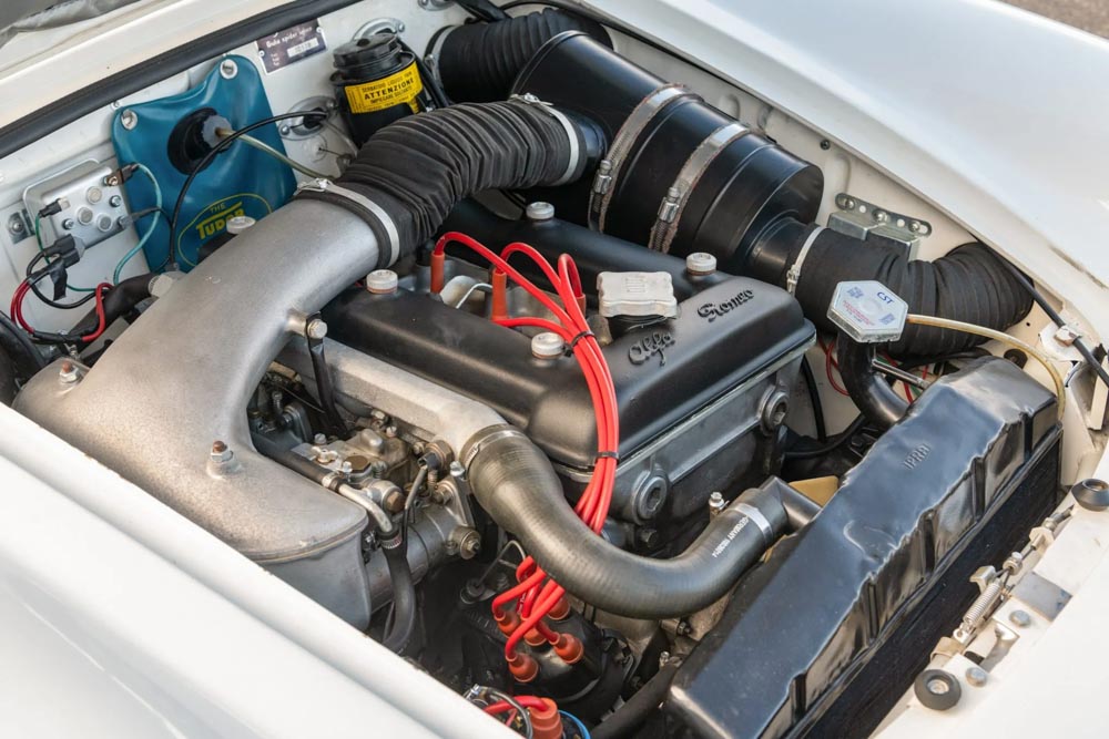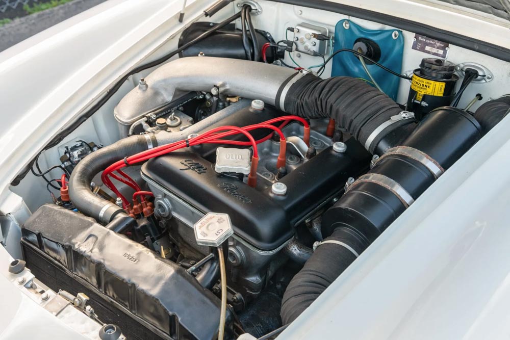 The 1.6L twin-cam inline-four was overhauled during the refurbishment and is equipped with a Bosch ignition coil. The fuel sending unit and dual Weber carburetors were rebuilt in 2013, at which time the valve cover gasket was replaced along with the fuel tank, pump, and filter.