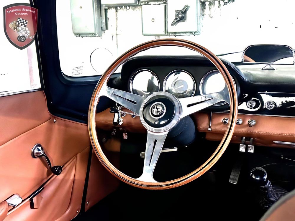 This Giulia SS was built on October 18, 1964 in dark green with a tan interior and was sold on January 26, 1966 to Alfa Romeo Frankfurt. This Alfa Romeo probably came to the USA with an American GI soldier and was lost there until it reappeared in red at the beginning of 2011. An Italian-American Alfa specialist then took on this Giulia and restored it without regard to cost. In 2013, the concours-restored Giulia Sprint Speciale was auctioned off at the renowned Gooding auction house in Scottsdale/USA by a Monegasque art historian with an important Alfa Romeo collection for a world record price of US$ 198,000. But the car was not good enough for him and so he decided, with the help of the former Alfa Classic Center in Dortmund and the well-known GTA specialist Furiani, to produce a Giulia Sprint "Super" Speciale that is still unique today. The body was polished to a high gloss and sealed using the elaborate Swissvax process. The task then consisted of incorporating contemporary tuning measures, almost all of which came from Alfa Romeo's 1965 technology kit, into this Giulia SS. Chassis/brakes : Koni red with ACC spring set 101, reinforced stabilizer at the front, modified rear axle suspension, reinforced bushings for the trailing arms at the rear. Conversion to 105 2.0L brakes at the front, retrofitting brake boosters, rear axle ratio: 8/43 with lock. Engine/gearbox: A GTA engine was built based on the original veloce engine. The engine body was retained and the cylinder head was replaced with an original GTA cylinder head. The whole thing with sporty road tuning and torque that comes on as early as possible. Retrofit oil cooler, increased cooling capacity, high-performance alternator, custom-made manifold and remaining exhaust system made of stainless steel, new gearbox (GTA) with modified gear ratios and hollow-drilled auxiliary and main shafts. The end result after a total investment of almost € 350,000 is a masterpiece. A Giulia SS "S" with more than 160 "Cavalli" (horsepower). In 2018, the work was completed and this Giulia SSS was added to the impressive Alfa collection and has driven an estimated 1,800 km to date. The body, the paintwork, the interior and the technology are still as good as new, as if fresh from the restoration workshop.
