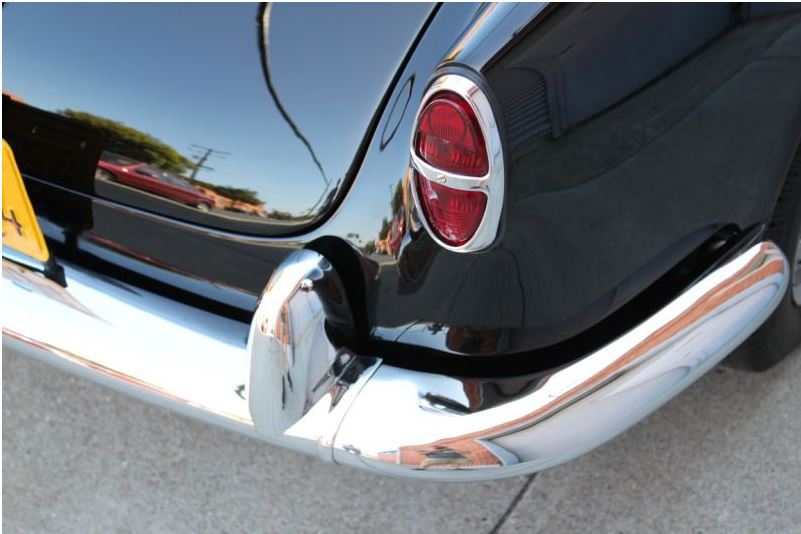 Cosmetically, the car is excellent. The paintwork was done to high standards, the body is straight and solid, and the panel fit is excellent, including the trunk lid. The chrome is excellent as well, as are the glass and lights, and the car has the crisp, glossy presentation and attention to detail necessary for a car to successfully compete in concours events.
