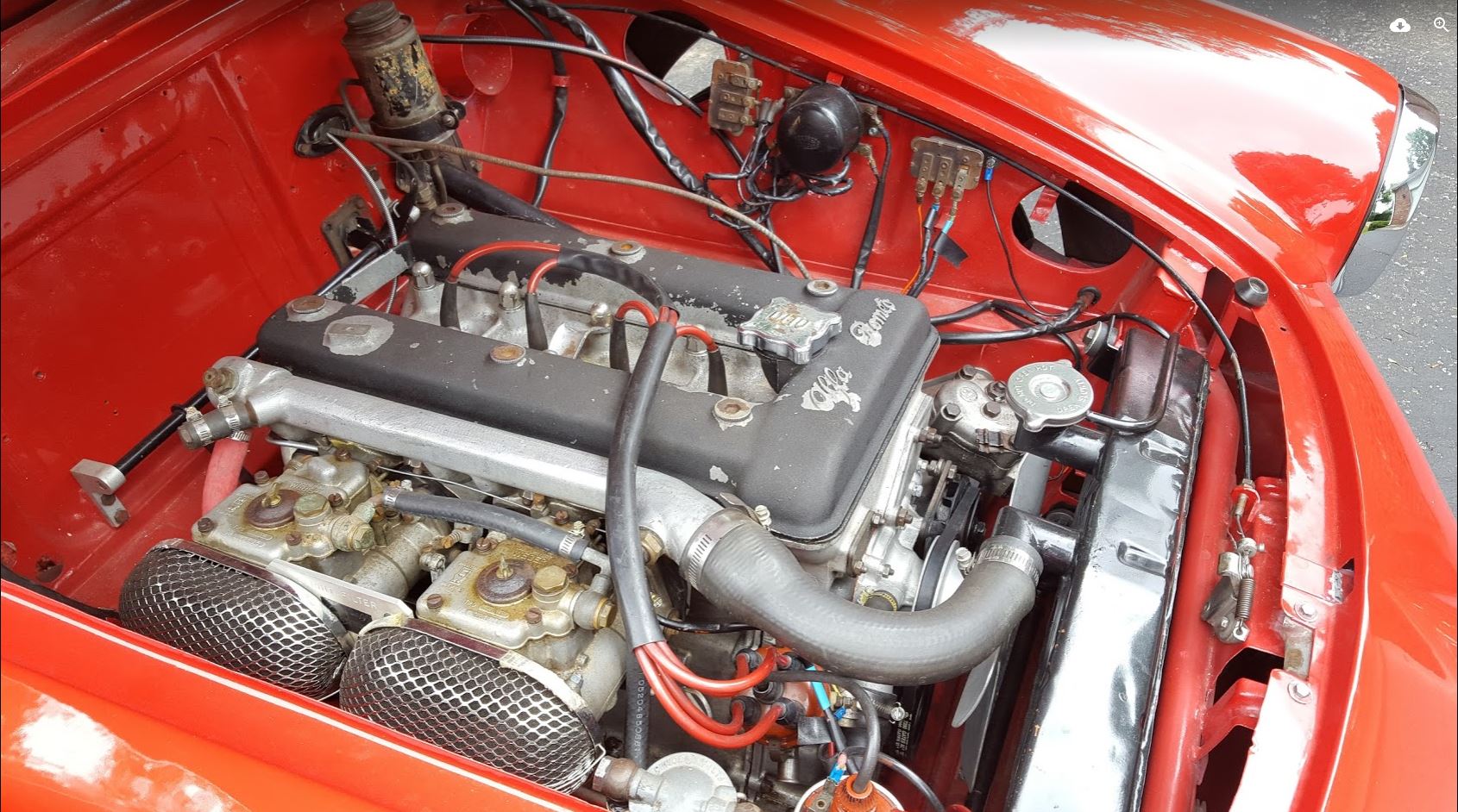 The car starts, runs and drives nicely. The engine is strong and the original tunnel case transmission shifts smoothly. It currently has 40DCOE carbs mounted but the original 40DCO3 carbs, manifolds and associated hardware are available. When we bought the car our intention was to make it a nice driver and that is how it is now. It is not a concours car but would be a very good basis for one as it is the desirable short wheelbase Giulietta Veloce, very hard to find in this condition.