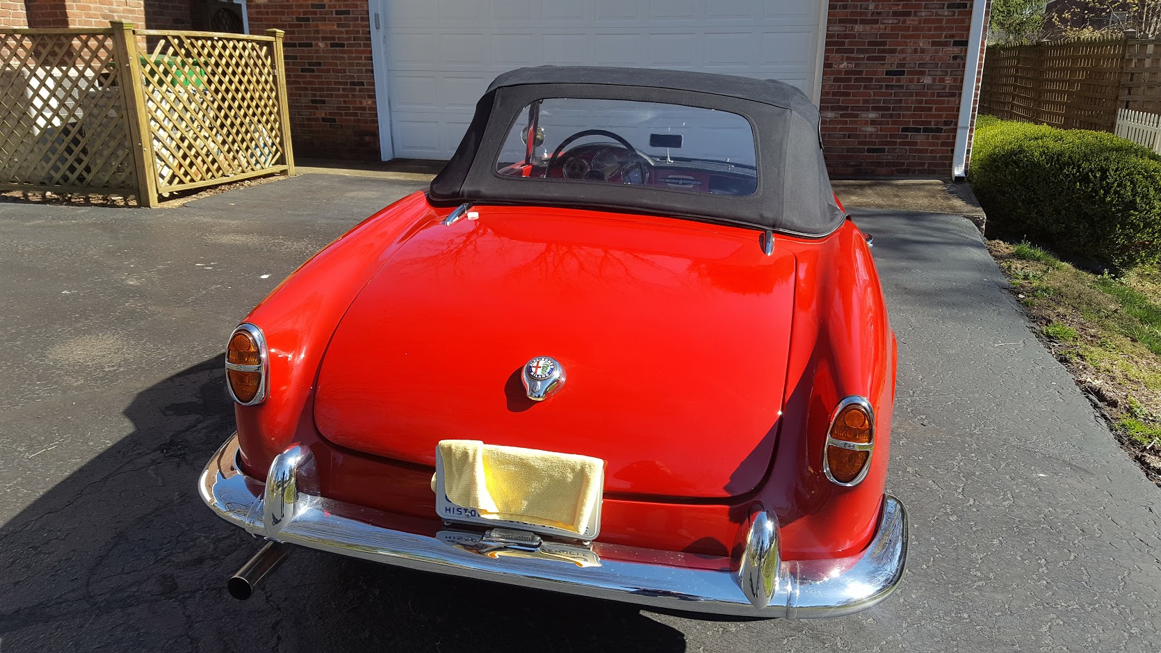 My wife and I are selling our 1958 Alfa Giulietta Spider Veloce. We bought it out of a barn about 10 years ago expecting some serious effort to get it running and driveable, but to our surprise, after a few hours work to check out its condition and prepare it for recommissioning, we were able to get it started and running. We were excited to find that the engine was original to the car and that the body was in very good condition. After repairing the brakes and a few other basics, we were able to enjoy it for a couple of years without any restoration. After confirming the production date and colors (red with black interior) we even had a 50th birthday party for it on August 30th, 2008 that was attended by a number of our friends and Alfisti.