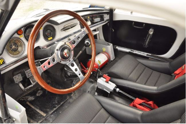 Complete with its hard top, this car has had various improvements to enable it to be eligible for and competitive in historic racing : the engine, fed by two fuel pumps and two Weber 40 carburettors connected by a special pipe, was prepared by the renowned Italian workshop Gamberini, and produces 122 bhp on the test bed. Other race preparation work included: lightweight windows in perspex with quick-opening system, aluminium pedals, side-exhaust, black vinyl bucket seats with harnesses, six-point roll-cage, Veglia rev counter with red-line at 7,500 rpm, fire extinguisher.